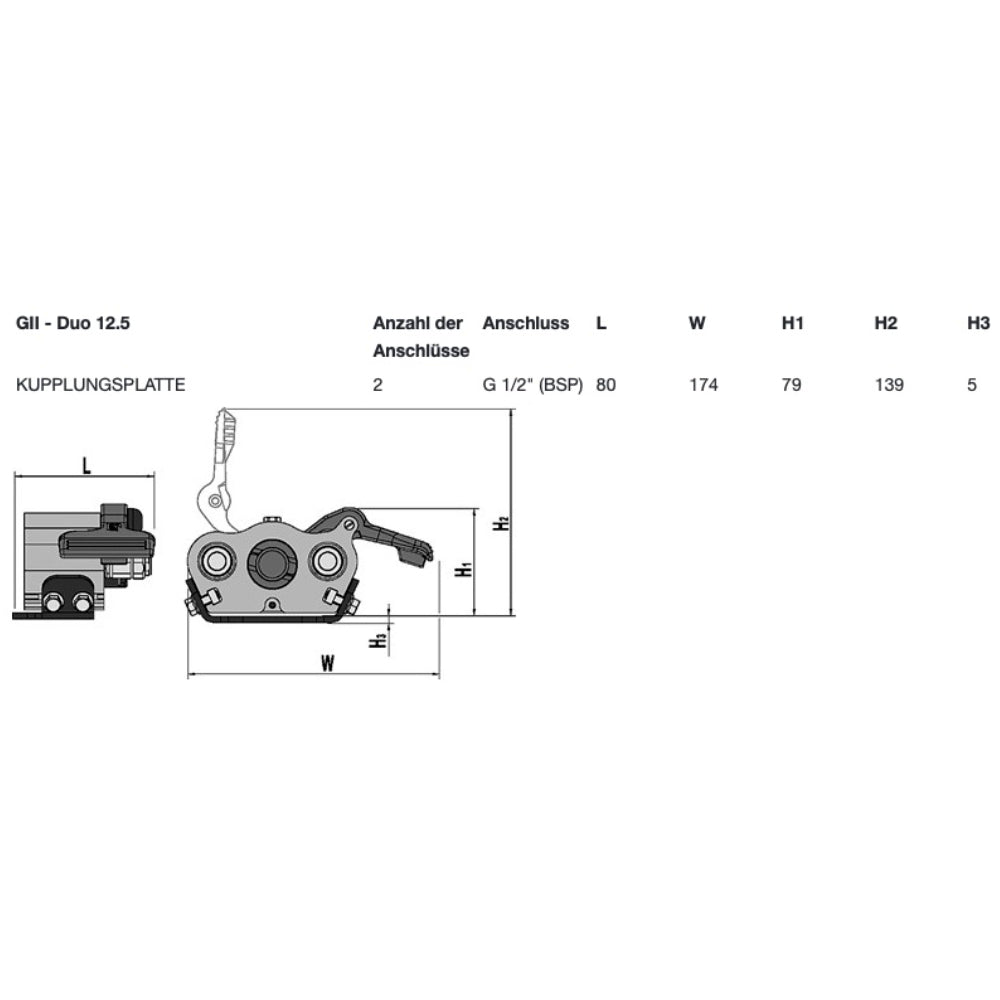 Kupplungsplatte mit 2 Anschlüssen 1/2″ BSP (DN12.5)